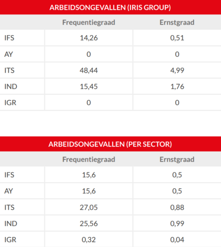 In 2026 was het een objectief voor de groep Iris om de frequentiegraad en ernstgraad met 10% te verminderen.